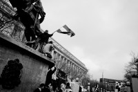 San Francisco has 30,000 empty housing units and 10,000 homeless. To bring attention to this disparity, groups such as "Homes not Jails" and other loosely affiliated anarchist groups have occasionally occupied empty but habitable buildings ignored or abandoned by their property owners. This particular gallery is from an occupation of an abandoned SRO (single room occupancy) building in the Mission District on July 3rd, 2011. Police came to the scene to evict the protesters but were met with resistance, as it was their legal right to occupy the building until the owner specifically requested for them to leave.